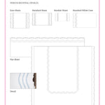 Linen Accessories- Please wash on cold, delicate cycle and then air dry. Tissue covers can be placed on the box while slightly damp. Napkins, tip towels and coasters can be pressed face down with a steam iron, no starch.