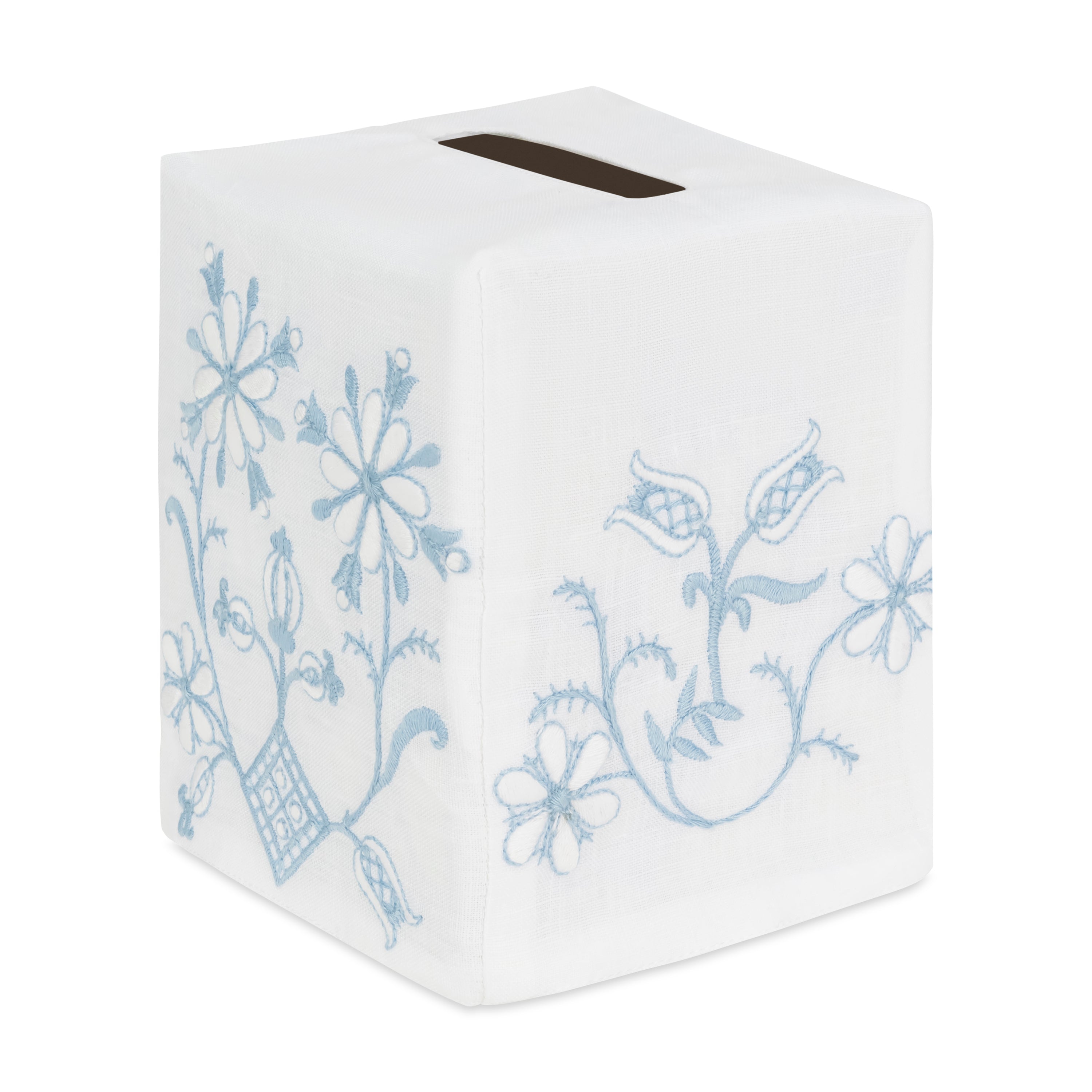 Linen Accessories- Please wash on cold, delicate cycle and then air dry. Tissue covers can be placed on the box while slightly damp. Napkins, tip towels and coasters can be pressed face down with a steam iron, no starch.